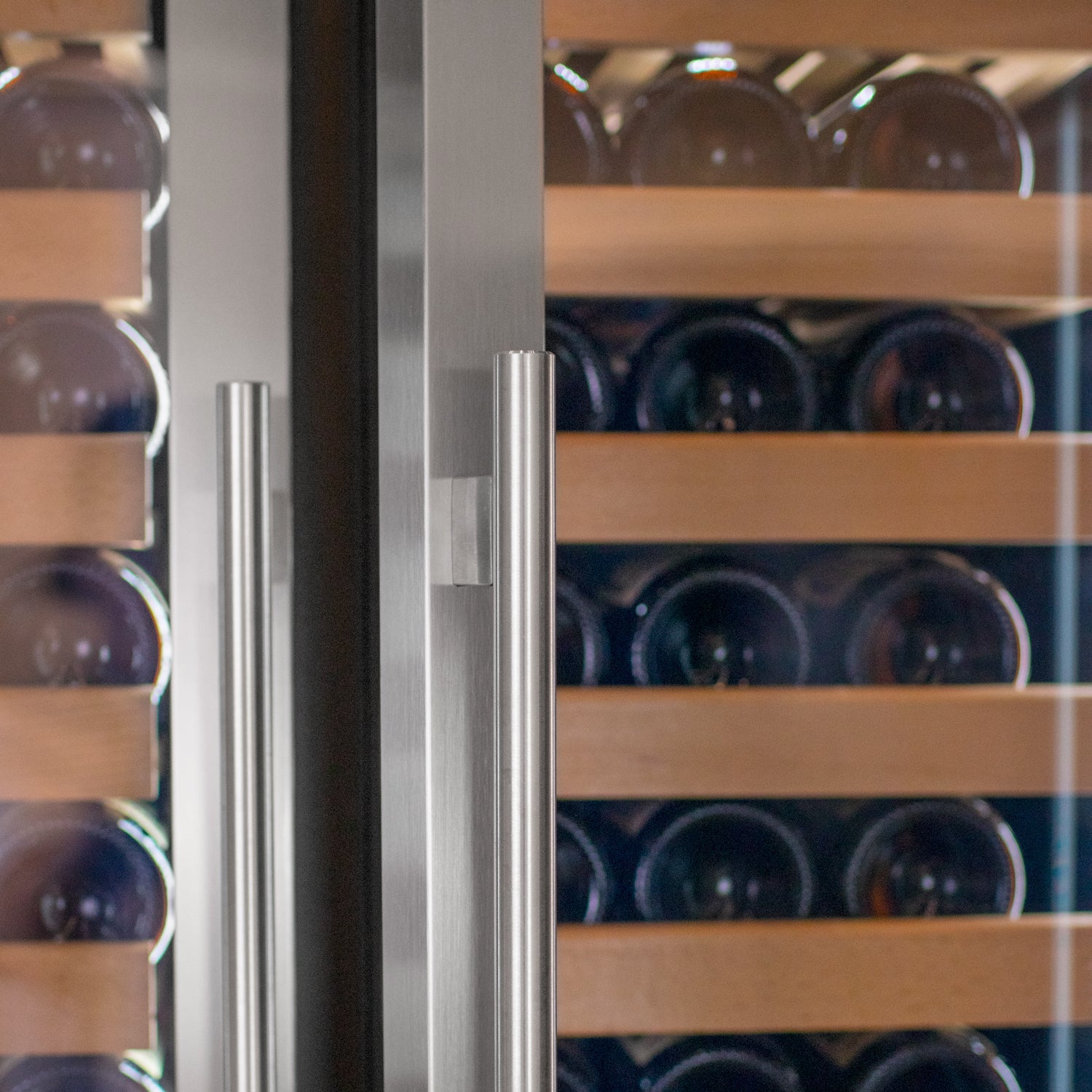 The wine cooler can hold a total of up to 108 wine bottles. The bottom of the unit has two drawers that can hold a combined total of up to 182 cans or 105 bottles. Capacity is based on standard 750ml wine bottles, 12oz. cans or 22oz. beer bottles at 11" tall and maximum count may vary.