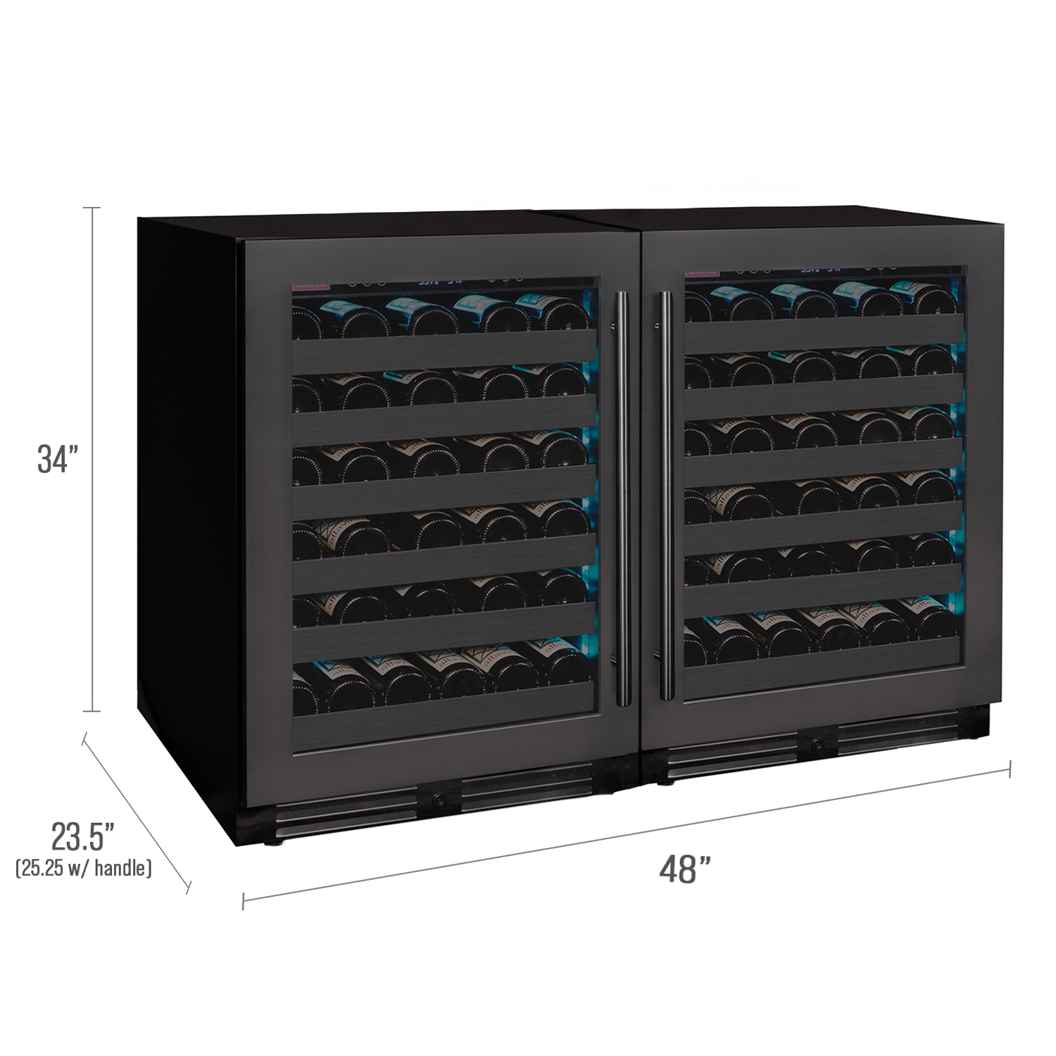 Reserva Series 100 Bottle 34" Tall Dual Zone Black Stainless Steel Side-by-Side Wine Cooler Refrigerator