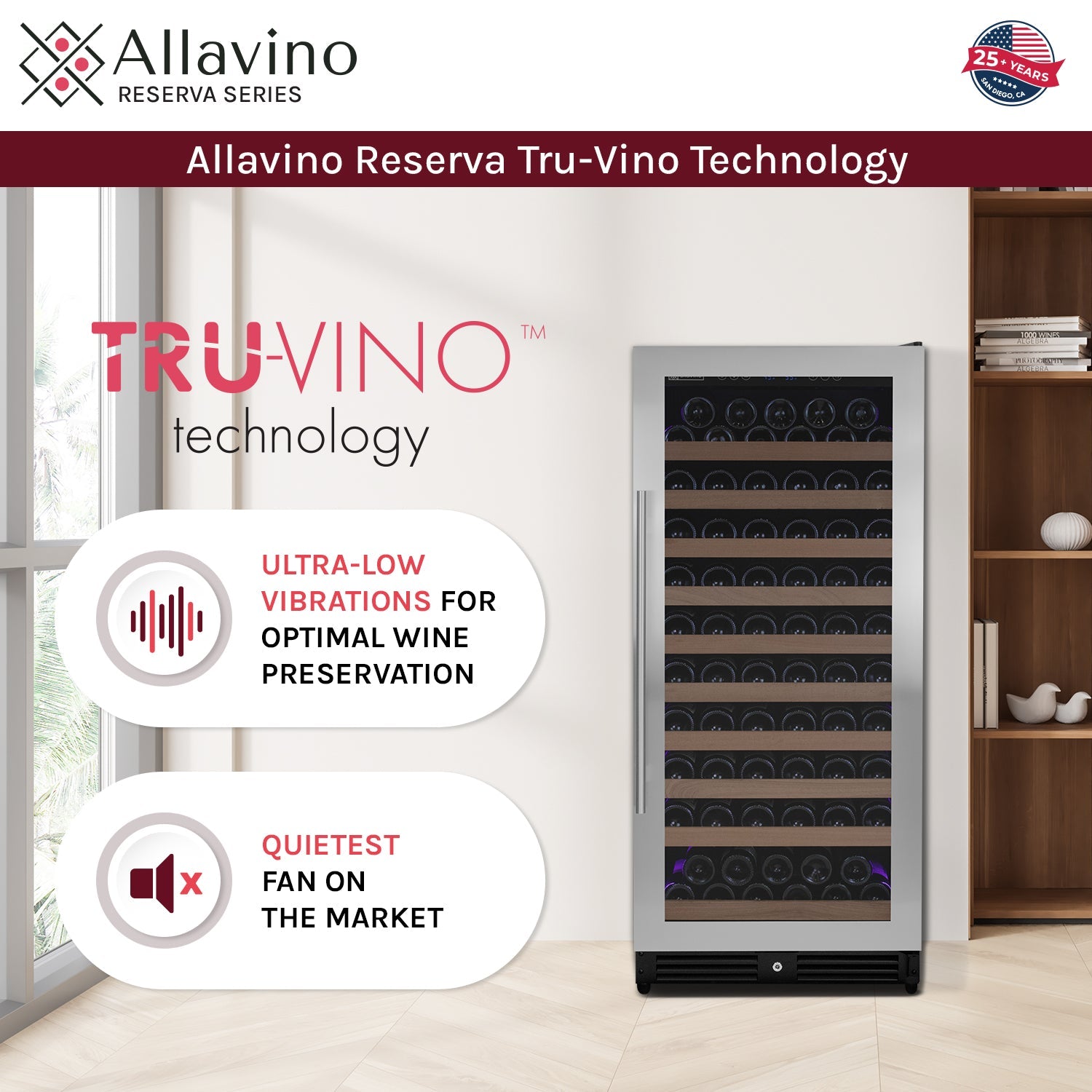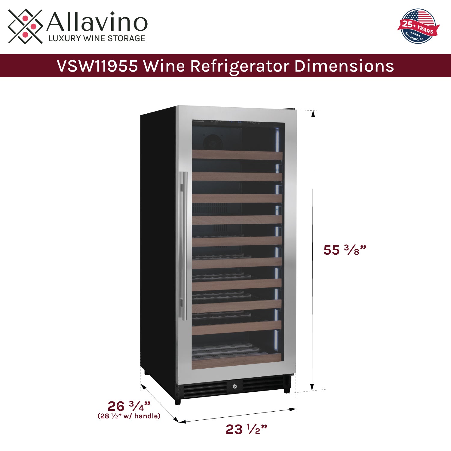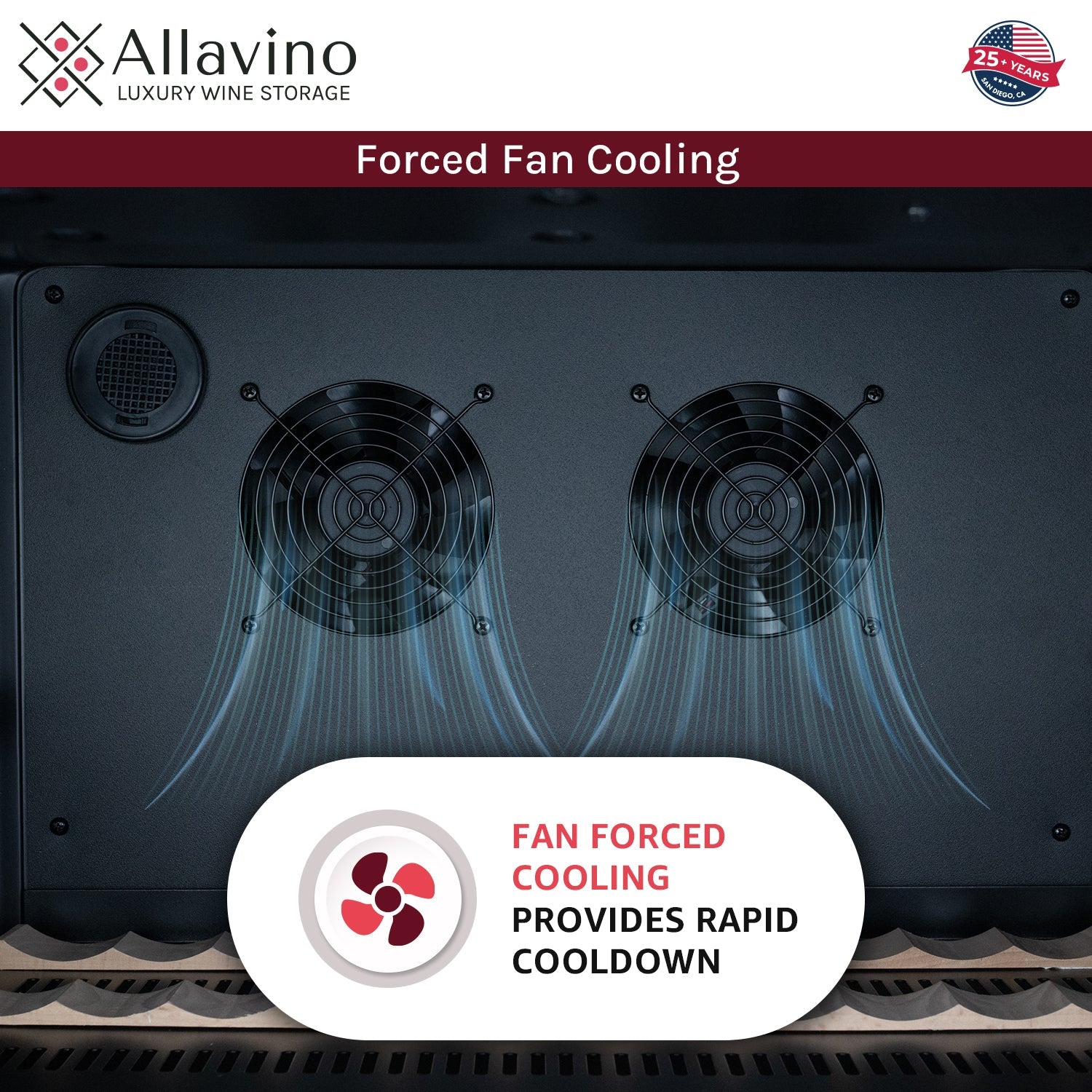 Allavino's exclusive FlexCount shelves give you ultimate flexibility and accessibility, regardless of bottle size. Spacing between each shelf gives you enough clearance to not worry about racks scraping your bottle labels. Wood slats refine each shelf to cradle your wine bottles and are designed with vibration-reduction technology to prevent harmful vibrations from excessive movement and damage.