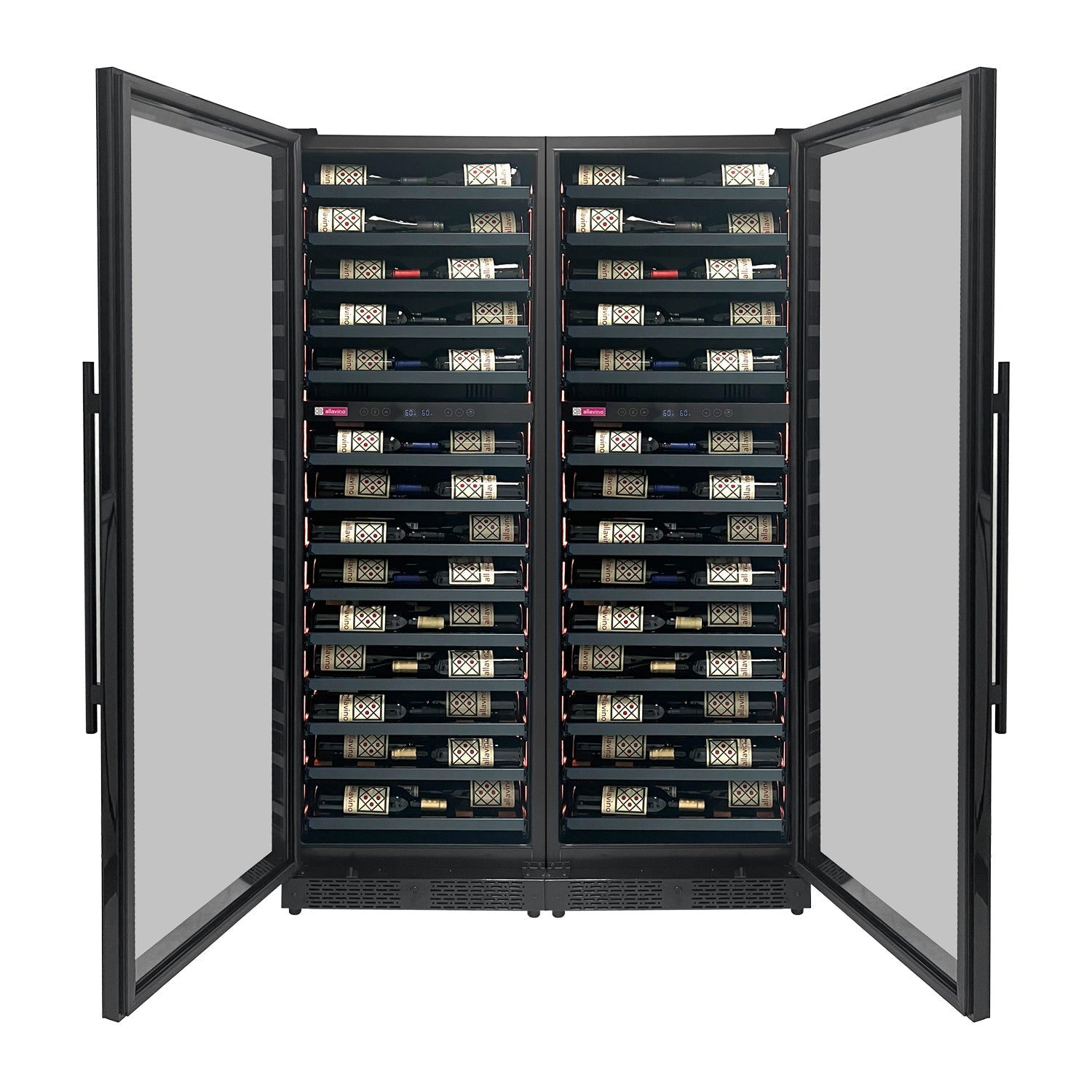 Reserva Series 134 Bottle 71" Tall Four Zone Black Side-by-Side Shallow Wine Refrigerator Console