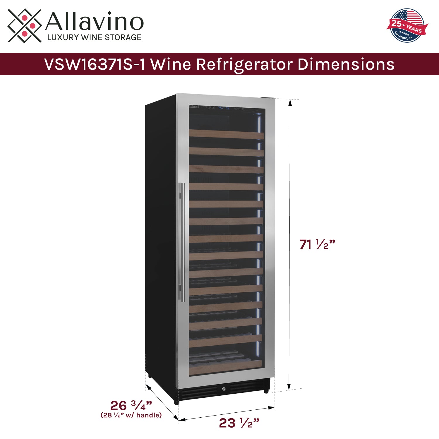 The VSW16371S-1SR holds up to 163 wine bottles, with uniquely-designed shelves that can hold bottles of various shapes and sizes. The front-venting arrangement gives this cooler the ability to stand alone or to be built into your existing cabinets. A pane of low-emissivity insulated glass will keep your wines safe from the damaging influence of UV light. Customizable LED lighting can be changed with the touch of a button to create the perfect mood for any home.