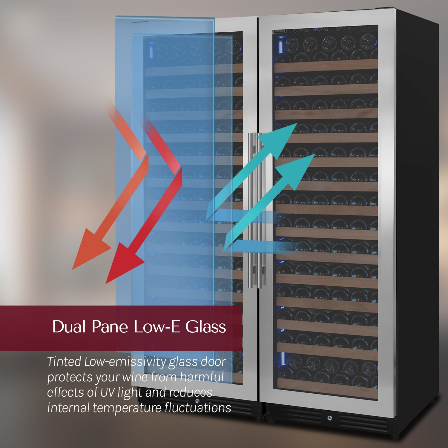 Reserva Series 326 Bottle 71" Tall Dual Zone Stainless Steel Side-by-Side Wine Refrigerator