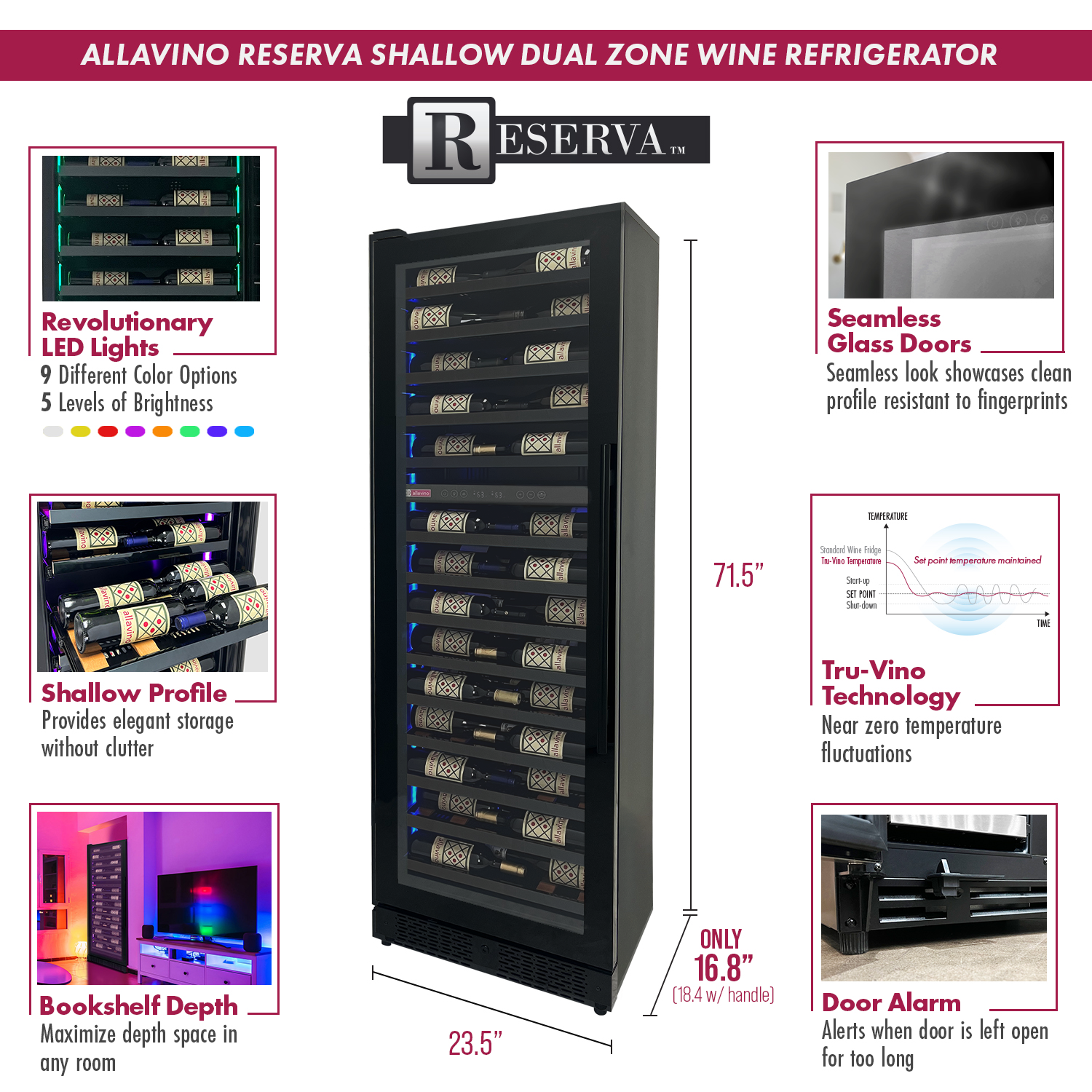 Reserva Series 67 Bottle 71" Tall Dual Zone Left Hinge Black Shallow Wine Refrigerator Console