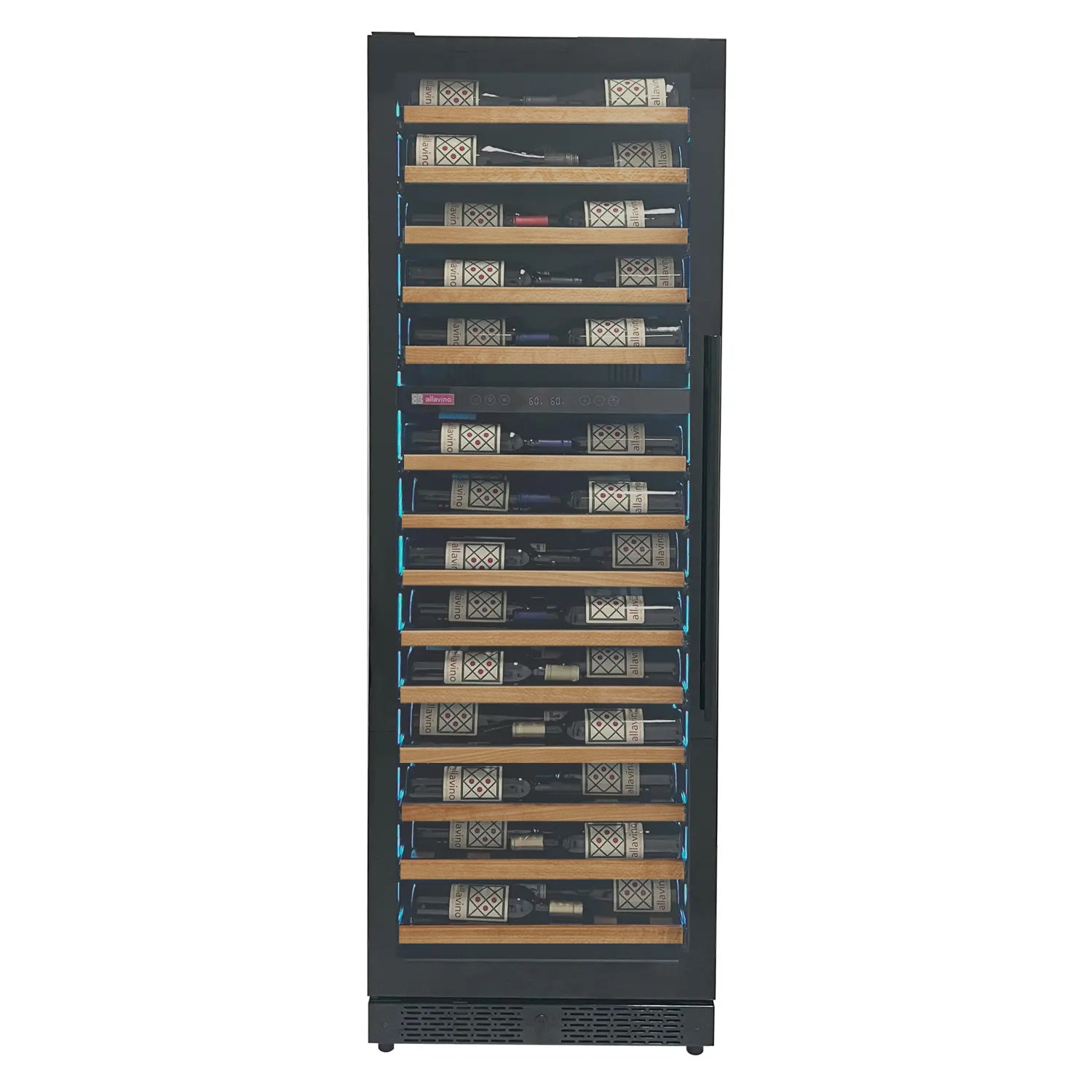 Reserva Series 67 Bottle 71" Tall Dual Zone Left Hinge Black Shallow Wine Refrigerator with Wood Front Shelves