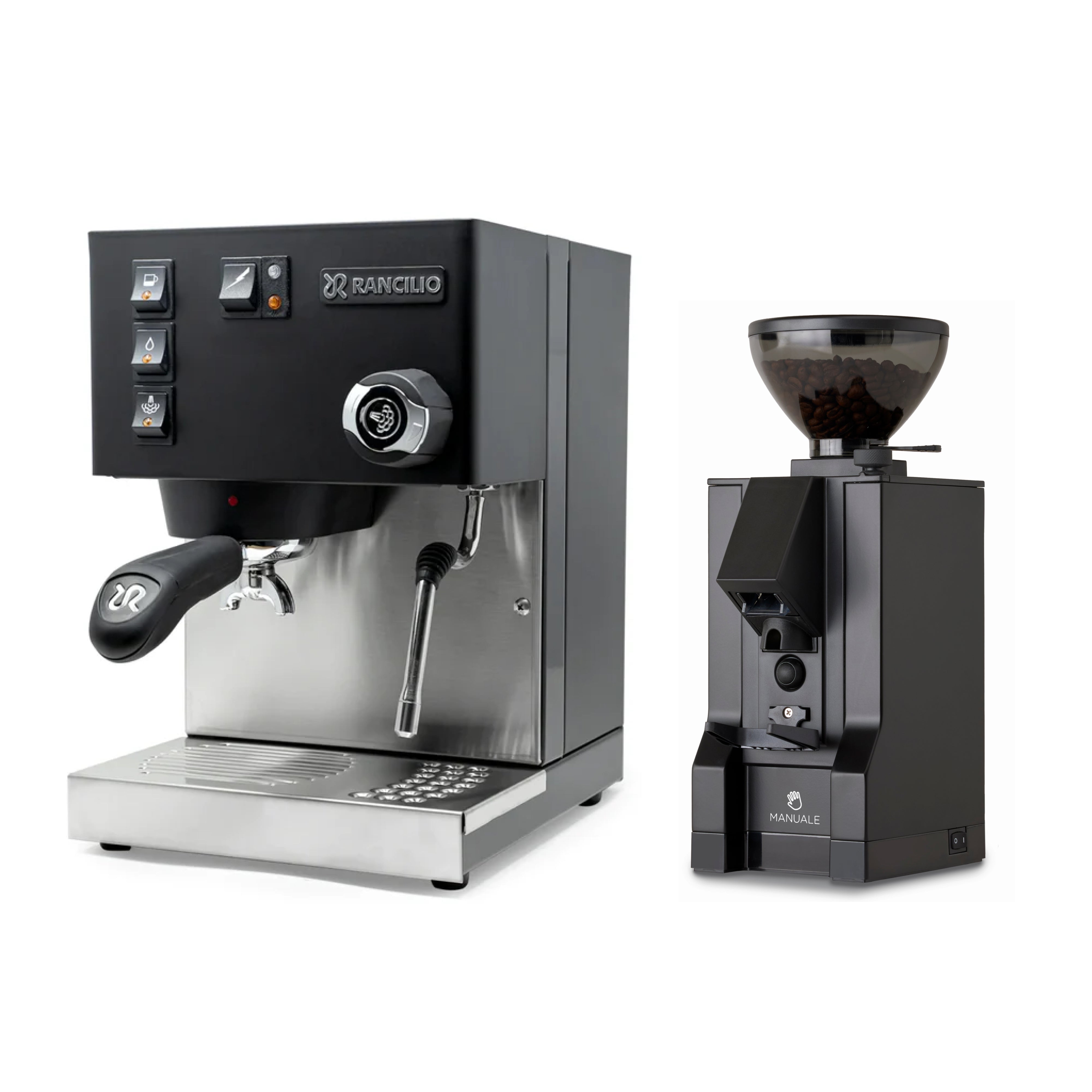 An excellent, long-lasting espresso setup can be yours with the Rancilio Silvia and Eureka Mignon Notte Bundle. Simple and sturdy in spades, the Rancilio Silvia brings reliable espresso preparation with a single boiler design, ample steaming power, and a case size perfect for the home counter. The Eureka Mignon Notte complements this with simple push-to-grind operation, stepless grind adjust, and matching compact footprint. Each bundle includes a Rancilio Silvia Espresso Machine in your color of choice and Eureka Mignon Notte Espresso Grinder.