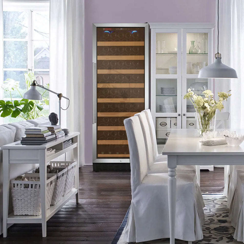 The Allavino Vite II YHWR115-1SR20 Wine Refrigerator with Tru-Vino Temperature Control Technology is a stylish freestanding unit that can hold up to 99 bottles. Protect and preserve your wine collection with the latest innovation in wine storage technology by Allavino. Easily set your desired temperature with the easy-to-use digital control panel and trust in Tru-Vino Temperature Control Technology to protect your collection through consistent temperature maintenance. This wine refrigerator features sturdy hardwood shelves that can be easily adjusted to fit the needs of your collection. The smooth gliding shelves allow for convenient access to every bottle without disrupting the delicate wine maturation process.