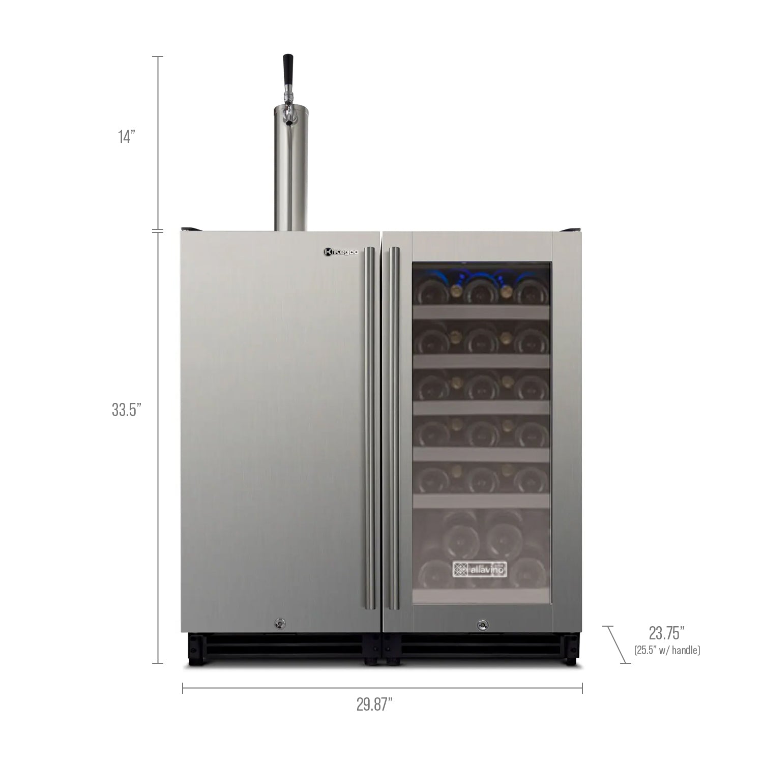 30" Side-by-Side Single Tap Kegerator and Single Zone Wine Refrigerator